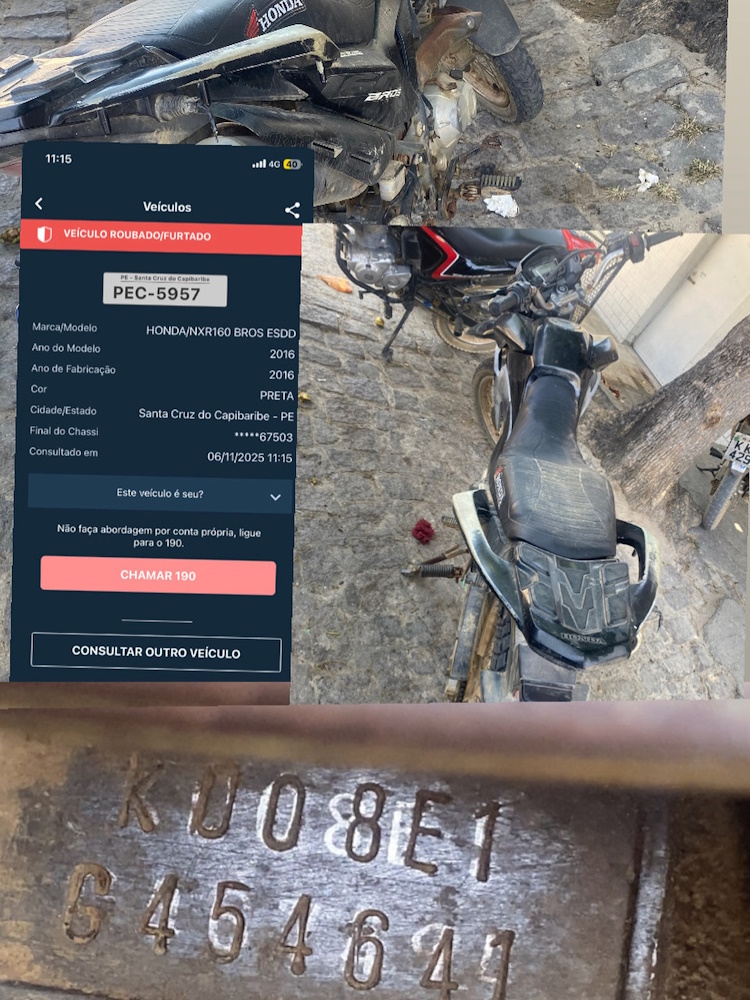De acordo com as informações, as equipes foram acionadas após denúncia de um veículo suspeito estacionado em via pública. Durante a verificação, foi constatado que a motocicleta havia sido roubada em 2016, na cidade de Santa Cruz do Capibaribe, no Agreste do Estado.