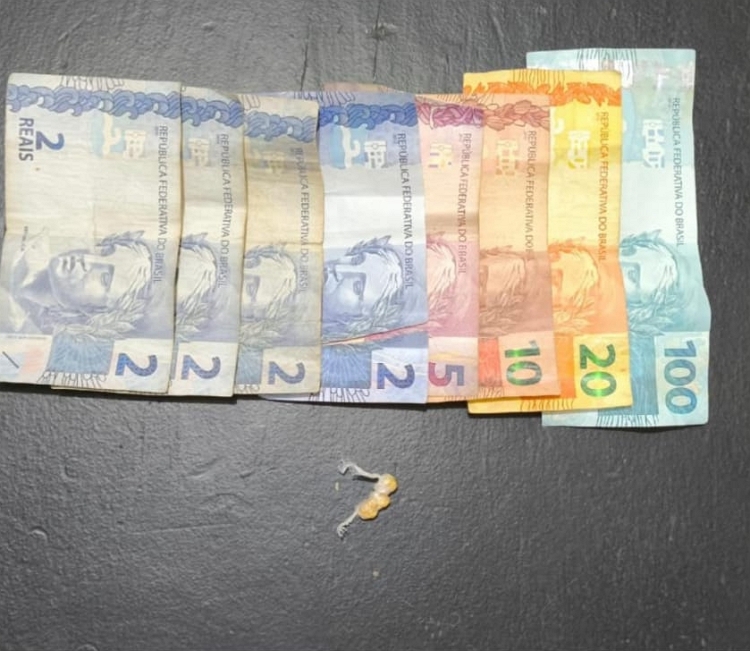 Durante a ação, a equipe flagrou um indivíduo que, ao perceber a presença do policiamento, tentou descartar três pedras de crack. Na busca pessoal, os militares também encontraram R$ 143,00 em espécie com o suspeito.