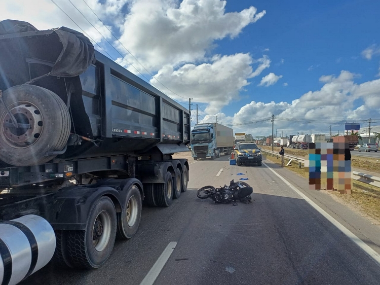 De acordo com informações da Polícia Rodoviária Federal (PRF), a colisão ocorreu por volta das 5h30 e envolveu dois caminhões e uma motocicleta. As primeiras apurações indicam que o motociclista trafegava entre os caminhões no momento do impacto.
