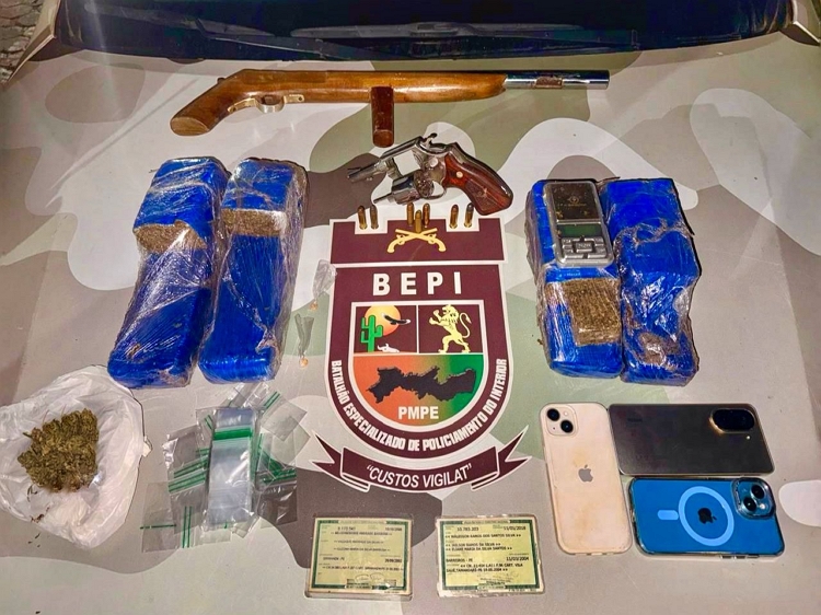 Além das drogas, a dupla também portava um revólver Taurus calibre 38 carregado com cinco munições intactas, e ainda uma espingarda, demonstrando o elevado grau de periculosidade e a intenção de agir de forma violenta, caso fossem abordados. Para completar, os suspeitos estavam em uma motocicleta Honda Start CG 160, que também foi apreendida pelos policiais.