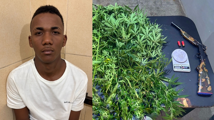 De acordo com a polícia, o suspeito, identificado como Leandreson da Silva Tavares, de 19 anos, foi abordado durante o reforço ao combate à criminalidade na localidade. Com ele, os policiais encontraram uma espingarda calibre 12, munições, pés de maconha e uma balança de precisão.