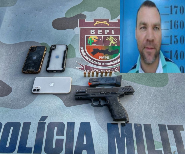 Com o suspeito, os policiais apreenderam uma pistola calibre .40 com numeração suprimida, um carregador, sete munições intactas do mesmo calibre, seis munições deflagradas, além de três aparelhos celulares modelo iPhone.