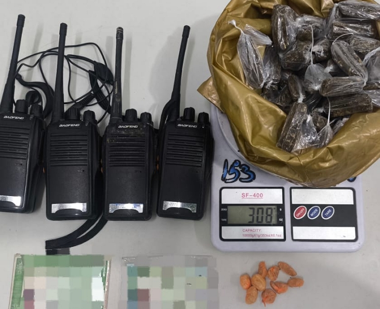 Durante a abordagem, os policiais apreenderam cerca de 308 gramas de maconha, nove pedras de crack, um aparelho celular e quatro rádios comunicadores, materiais que, segundo a Polícia Militar, eram utilizados para a prática do tráfico e para a comunicação entre os suspeitos.
