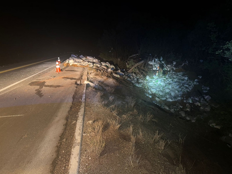Por volta das 23h, a PRF foi acionada para atender um sinistro no Km 116 da rodovia. O motorista de um caminhão ficou ferido após capotar e foi encaminhado pelo Corpo de Bombeiros para um hospital da região.