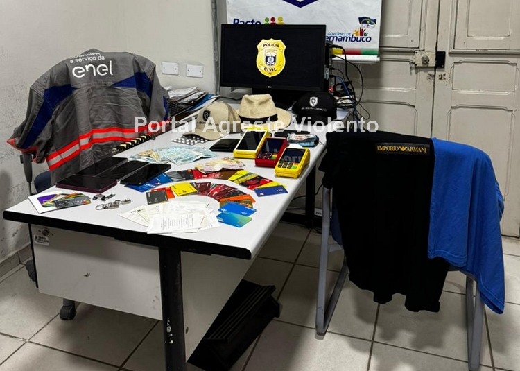 Após a captura, os policiais civis se deslocaram até o endereço residencial do investigado, onde cumpriram o mandado de busca e apreensão. No local, foram encontradas maquinetas de cartões de crédito, dinheiro em espécie e aparelhos celulares. Já no veículo utilizado por Ademir, a equipe apreendeu diversos cartões bancários em nome de terceiros, alguns deles pertencentes a vítimas anteriores dos golpes, além de pendrives, impressos falsos com timbre de instituições bancárias e outros documentos utilizados nas fraudes.