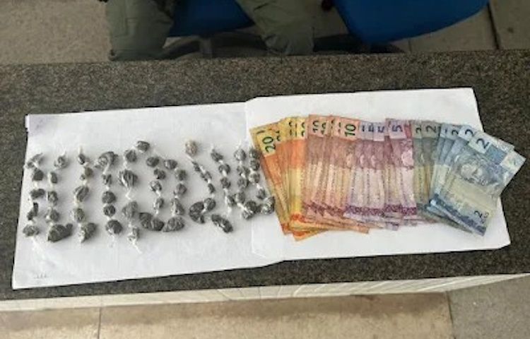 Em continuidade às diligências, e com autorização da responsável legal, a equipe seguiu até a residência do menor, onde foram localizados mais entorpecentes e dinheiro em espécie. No total, foram apreendidos 56 invólucros de maconha e R$ 301.