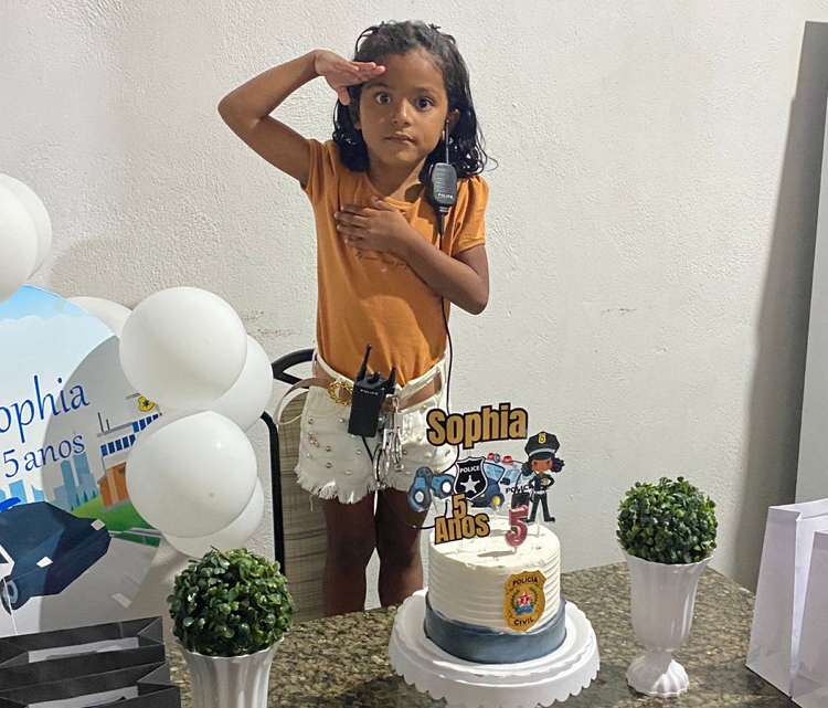 O fim da tarde deste sábado (24) foi marcado por emoção e alegria para a pequena Ayanne Sophia, que celebrou seus 5 anos de idade de uma forma muito especial. Moradora do município de Jupi, no Agreste de Pernambuco, a aniversariante realizou um sonho ao escolher como tema de sua festa a Polícia Militar, profissão que ela já diz admirar e sonhar em seguir no futuro.