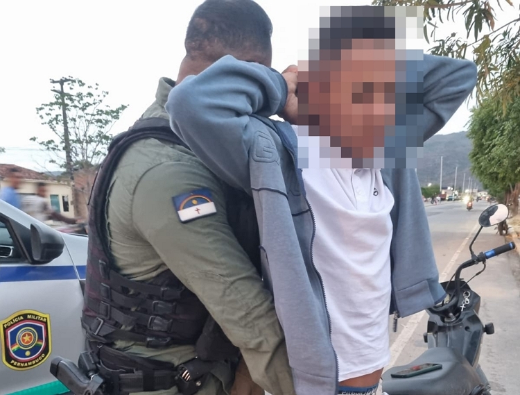 Na tarde desta quarta-feira (28), policiais militares do 9º BPM abordaram dois indivíduos que trafegavam em uma motocicleta Honda Pop 100, após saírem de uma área conhecida pelo tráfico de drogas, na Rua de Peituri, no município de Águas Belas, no Agreste de Pernambuco.