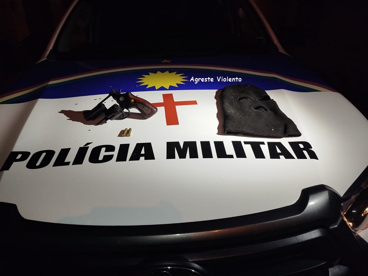 Durante a abordagem, os policiais observaram que um dos ocupantes tentou esconder um objeto sob o banco dianteiro do veículo. Após revista pessoal, nada de ilícito foi encontrado com os suspeitos. No entanto, durante a busca no automóvel, foi localizado um revólver calibre 38, contendo duas munições, além de uma balaclava.
