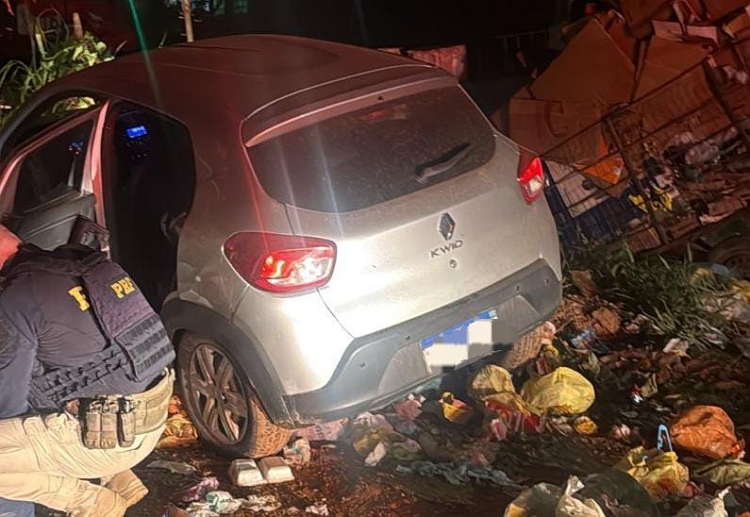 Após cerca de cinco quilômetros de acompanhamento, o motorista perdeu o controle do veículo, saiu da pista e colidiu em uma cerca. Dois homens correram em direção ao matagal, mas o passageiro foi detido.