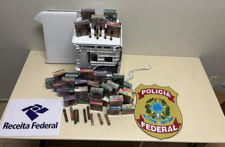 De acordo com a PF, foram apreendidas 47 caixas, cada uma contendo 10 refis de vape. O material estava escondido dentro de um aparelho de gelágua, no compartimento onde normalmente fica o motor, como forma de tentar burlar a fiscalização.