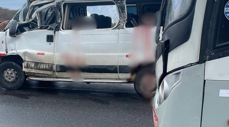 A colisão envolveu uma van e um caminhão. Com o impacto, dois passageiros da van morreram no local, enquanto outras pessoas ficaram feridas.