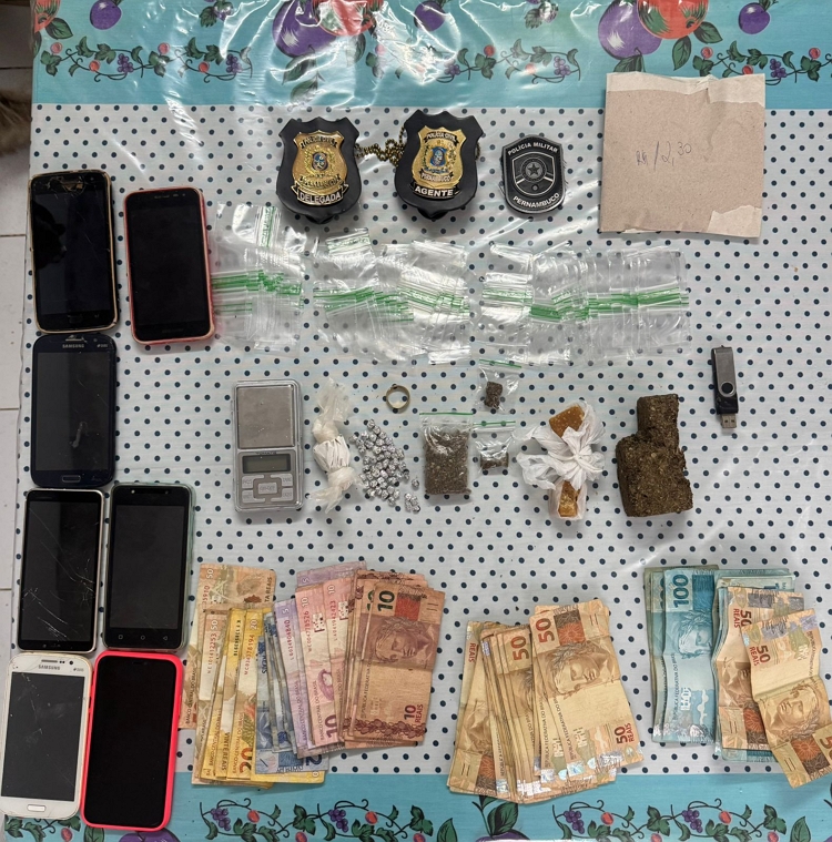 Durante a ação, foram cumpridos oito mandados de busca e apreensão domiciliar na cidade de Águas Belas, além de fiscalizações ostensivas em pontos estratégicos. No decorrer da operação, todos os mandados foram devidamente cumpridos, resultando na apreensão de celulares, pedras de crack, cocaína e maconha, além de mais de R$ 4 mil em espécie. Também foi apreendida uma motocicleta CG 125, de cor vermelha, com sinais de adulteração.