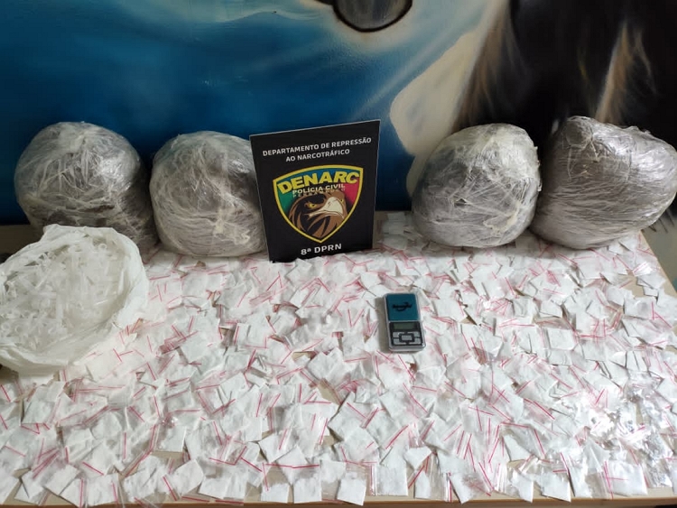 Ao todo, foram apreendidos aproximadamente 2 mil invólucros do tipo zip-lock contendo cocaína, que somaram cerca de 900 gramas, além dos 4 quilos de maconha, centenas de recipientes do tipo eppendorf utilizados para embalar drogas e uma balança de precisão.