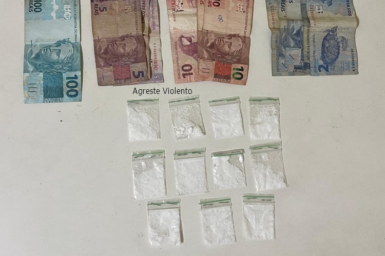 Durante a revista pessoal, foram encontrados com o suspeito 11 papelotes de cocaína, além da quantia de R$ 155,00 em dinheiro. Questionado sobre o entorpecente, ele afirmou que a droga seria destinada à comercialização. Ao ser perguntado sobre a origem da substância, o adolescente informou apenas que teria adquirido fora da localidade, sem revelar o local exato.