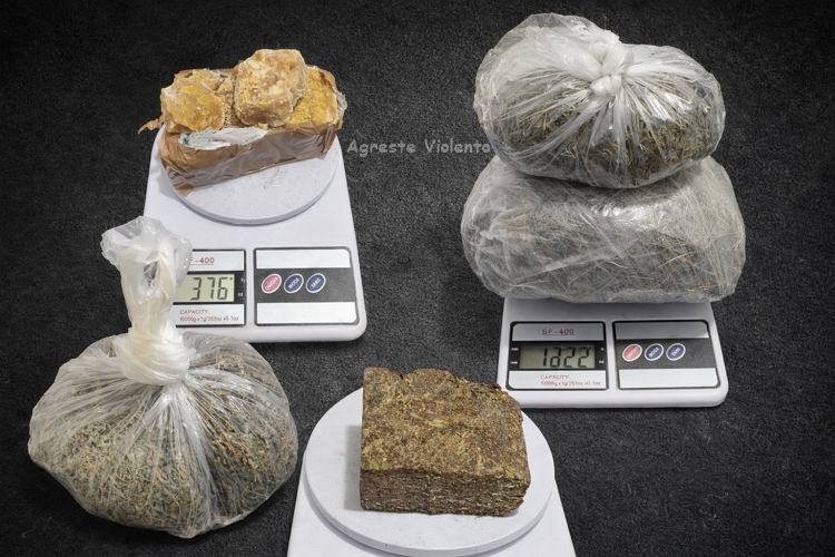 Ao todo, foram apreendidos 2,340 kg de maconha, 370 gramas de crack, três balanças de precisão, duas munições calibre 32, R$ 220 em espécie e três aparelhos celulares.