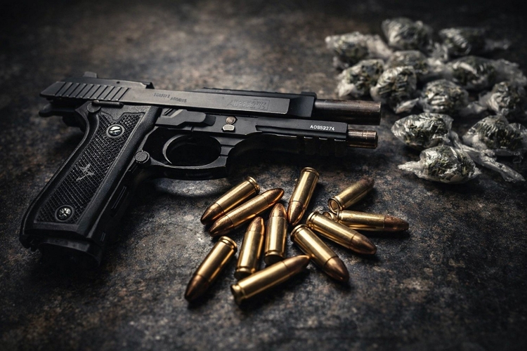 Durante a revista, os policiais encontraram com o suspeito uma pistola calibre 9 milímetros, além de entorpecentes. Diante da situação, ele recebeu voz de prisão no local.