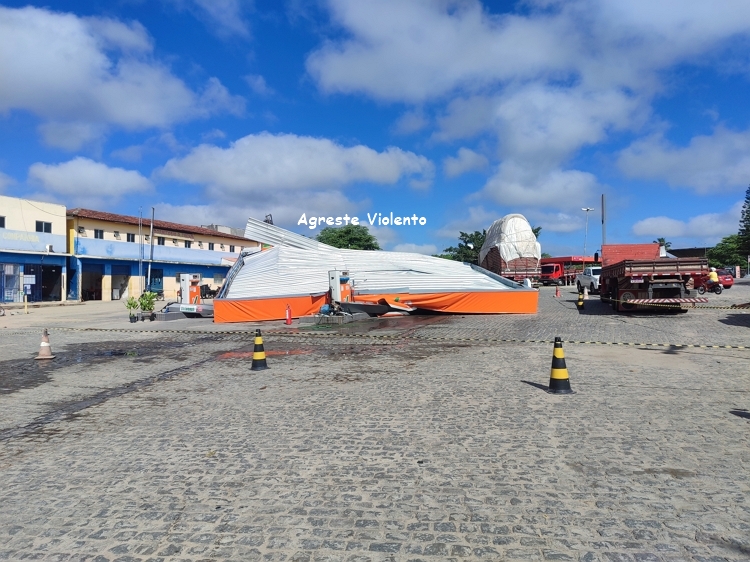 A cobertura do Posto Petrovia, localizado às margens da BR-423, no município de Lajedo, no Agreste de Pernambuco, desabou na madrugada desta sexta-feira (13) após ser atingida por um caminhão carregado de bagaço.