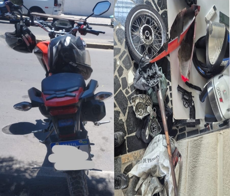 De acordo com a polícia, o efetivo seguiu até um endereço indicado pelo sistema de rastreamento e, ao chegar ao local, encontrou um suspeito em sua residência. No imóvel, foram apreendidos uma motocicleta modelo Honda Bros com sinais de adulteração, um simulacro de revólver e diversas peças de outras motos.