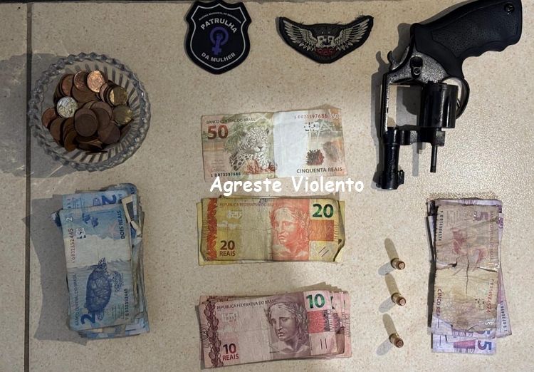 No interior da casa, os guardas encontraram um revólver calibre 38 e três munições, que foram apreendidos e levados para a delegacia. Durante a busca, também foi encontrada uma quantia em dinheiro.