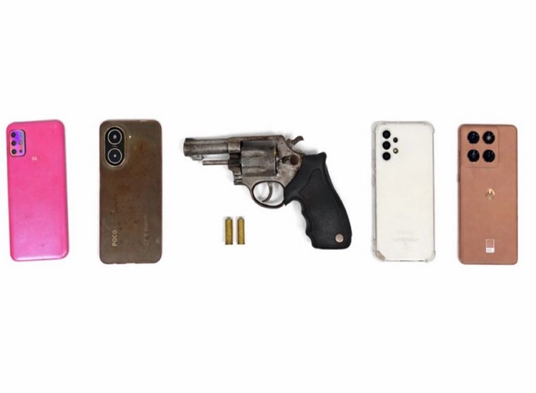 Durante a ação, os policiais encontraram um revólver calibre 38 dentro do carro. Nas proximidades, outro veículo foi localizado completamente incendiado, com um corpo carbonizado em seu interior.