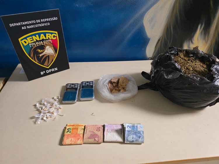Na operação, foram apreendidos aproximadamente 1 quilo e 250 gramas de maconha, 280 gramas de crack, a quantia de R$ 330 em espécie e duas balanças de precisão, materiais que, segundo a polícia, eram utilizados no preparo e comercialização das drogas.