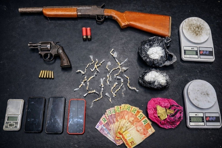 Na ação, foram apreendidos 95 gramas de cocaína, 80 gramas de crack e 130 pedras de crack, além de um revólver calibre 38, uma espingarda calibre 12, seis munições calibre 38 e duas munições calibre 12.