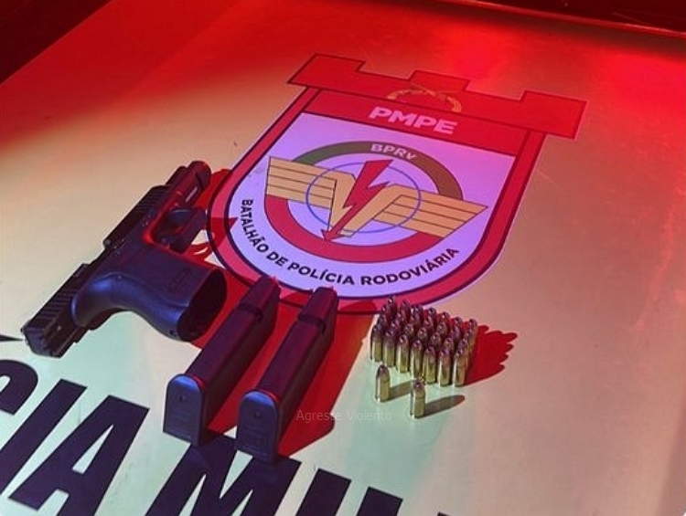 Ao ser questionado, o motorista informou que havia uma arma de fogo no interior do veículo, localizada debaixo do banco do motorista. Diante da situação, os policiais realizaram uma busca e encontraram uma pistola calibre 9mm, da marca Glock, municiada com 15 munições, pronta para uso. Ao lado da arma, também foi localizado um carregador sobressalente com mais 15 munições.