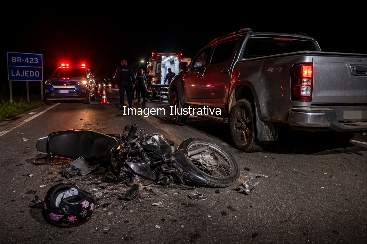 CAMINHONETE ATINGE MOTO NA BR-423 E DEIXA GRÁVIDA EM ESTADO GRAVE, EM LAJEDO