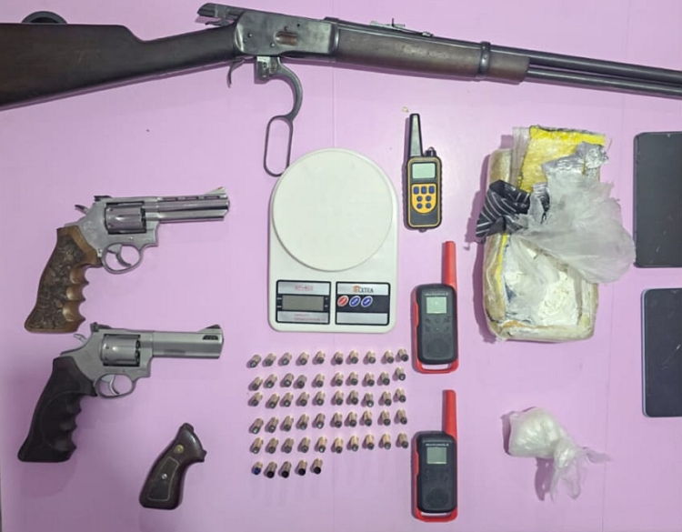 Na operação, os policiais apreenderam armas de fogo, munições, cerca de 650 gramas de substância análoga à cocaína, além de rádios comunicadores, celulares e motocicletas. Segundo a PM, os suspeitos atuavam na vigilância armada de um ponto de tráfico na região.