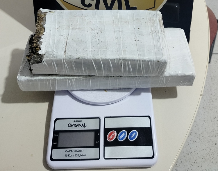 Após autorização para entrada na residência, os agentes realizaram buscas e localizaram, no quintal da casa, uma mala de pequeno porte enterrada contendo cerca de 1,670 kg de maconha. Durante a ação, também foi encontrada uma balança de precisão escondida dentro de um travesseiro no quarto da suspeita.