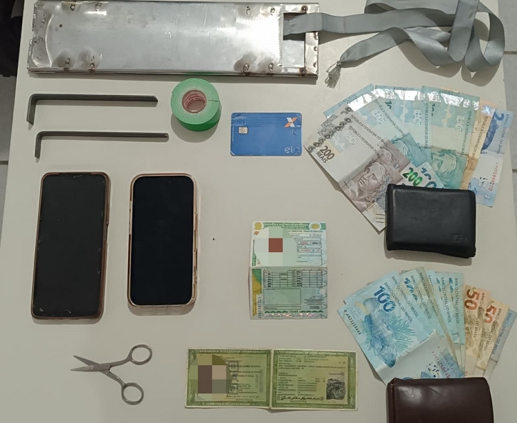 Com eles, foram apreendidos diversos cartões bancários, além de materiais utilizados para a aplicação do golpe, que geralmente consiste na retenção de cartões em caixas eletrônicos para posterior utilização indevida.