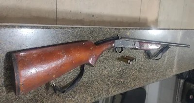 Durante buscas nas proximidades, os militares localizaram uma espingarda calibre 36, além de uma mochila contendo quatro cartuchos intactos e um deflagrado, compatíveis com a arma apreendida.