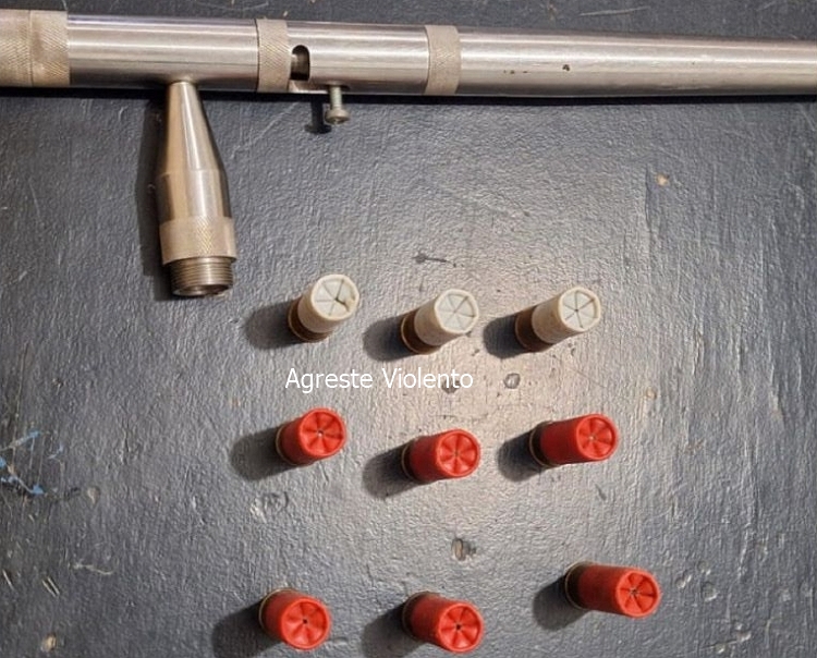 No local, com autorização da moradora, os policiais realizaram buscas e encontraram, escondida dentro de uma caixa em um dos quartos, uma arma de fabricação artesanal calibre 12, além de nove munições intactas.