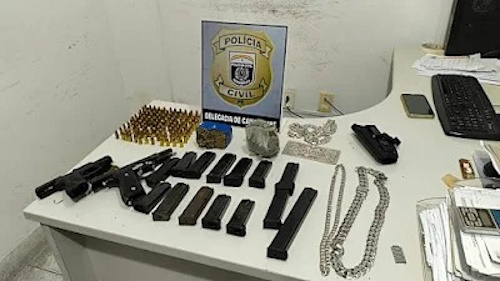 Durante a operação, os policiais apreenderam duas pistolas calibre 9mm, além de 132 munições, 13 carregadores, dois aparelhos celulares, uma motocicleta e uma porção de maconha. Diante do material encontrado, o suspeito também foi autuado em flagrante.