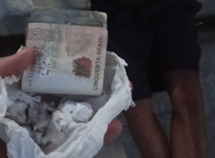 Ao perceber a aproximação do efetivo policial, o suspeito mudou bruscamente de direção e demonstrou nervosismo, o que levantou suspeitas dos policiais. Diante da situação, foi realizada a abordagem e, durante a busca pessoal, os militares encontraram no bolso da bermuda do jovem 38 pedras de crack, além de R$ 140,00 em dinheiro.