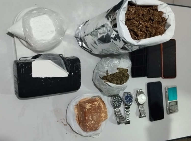 Durante a abordagem, os policiais apreenderam aproximadamente 1,240 kg de cocaína, 1,150 kg de maconha e meio quilo de crack. Todo o material ilícito foi recolhido pelas equipes.