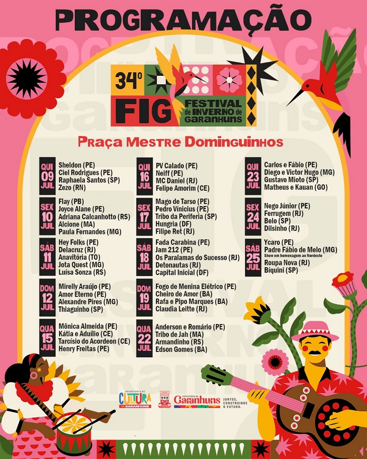PREFEITURA LANÇA A PROGRAMAÇÃO COMPLETA DO 34º FESTIVAL DE INVERNO DE GARANHUNS