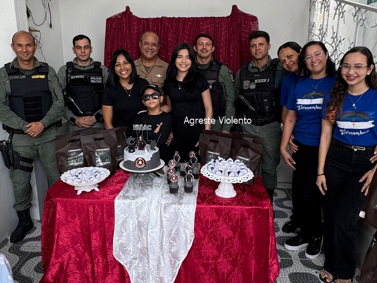 A chegada das viaturas e dos policiais despertou a alegria imediata de Isaac, que não conseguiu esconder a felicidade ao receber os militares com entusiasmo e admiração. Vestido para a ocasião e cercado pelos colegas de escola, o menino sorriu, abraçou os policiais e acompanhou de perto cada momento da visita, transformando o aniversário em uma lembrança marcante.