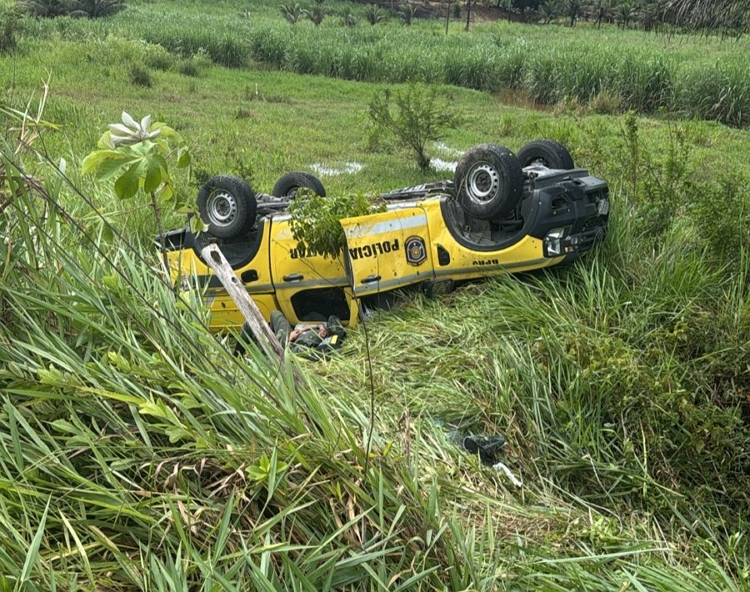 Uma viatura do Batalhão de Polícia Rodoviária (BPRv) capotou na tarde desta quinta-feira (23), na rodovia PE-96, nas proximidades do Engenho Canoa Rachada, na zona rural do município de Água Preta, na Mata Sul de Pernambuco.