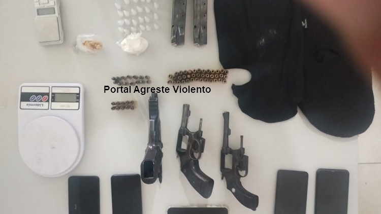 Na manhã desta terça-feira (18), policiais do GATI da 11ª CIPM prenderam um jovem de 21 anos no Loteamento Silvestre, em Jupi, após encontrarem um verdadeiro arsenal de armas e grande quantidade de drogas dentro da residência onde ele tentou se esconder. Apesar da apreensão e do material localizado, a Polícia Militar informou que não há qualquer ligação entre o jovem detido e o homicídio ocorrido no mesmo dia no município. Segundo a PM, durante LER NOTÍCIA