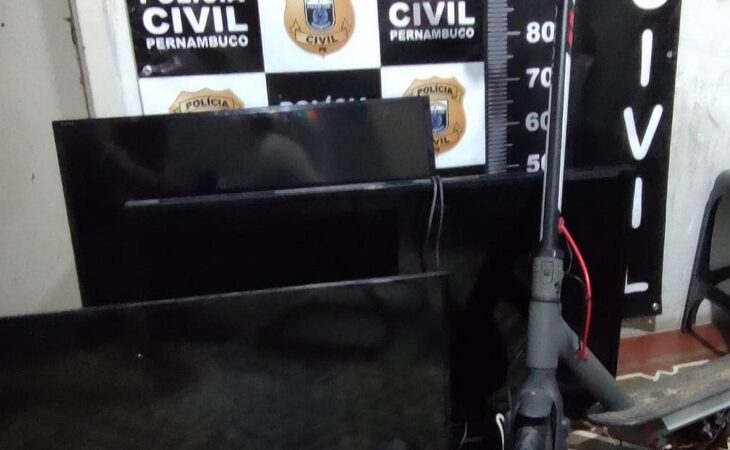 Três televisores e um patinete foram apreendidos com os receptadores do furto. A Polícia Civil (PC), na tarde desta quinta-feira, 9, por meio da equipe da 135ª Circunscrição Garanhuns (2ª DP), sob o comando do Delegado Marcelo Francisco, efetuou prisão em flagrante delito de C.F.S. conhecido por “Isac” e M.M.B.P. De acordo com a PC, após registro de ocorrência de furto a estabelecimento comercial, manutenção de equipamentos eletrônicos, ocorrido na madrugada de 06/06/2022, foram realizadas LER NOTÍCIA