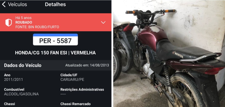 Uma moto tomada de assalto na noite desta terça-feira (12), na BR-423, no município de Lajedo, foi recuperada graças ao cerco montado pela Polícia Militar, os assaltantes que eram dois tiveram que abandoná-la nas proximidades da PE-158, no município de Calçado. A motocicleta foi levada para delegacia e entregue ao proprietário.