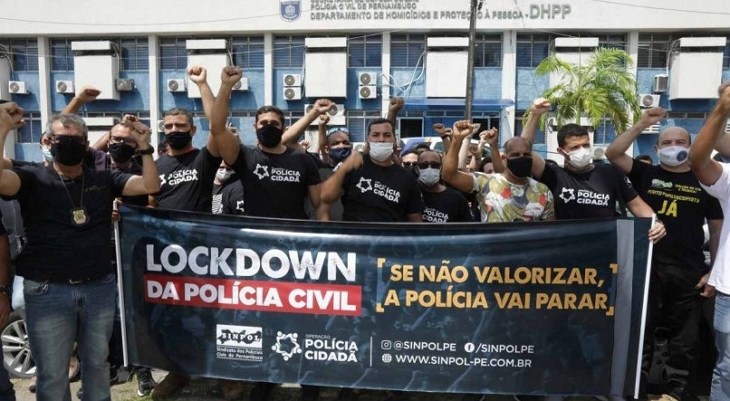 O Sindicato dos Policiais Civis de Pernambuco (Sinpol-PE) decretou nesta segunda-feira (14) greve da categoria em protesto em frente ao Palácio do Campo das Princesas, sede do governo estadual. O presidente do Sinpol, Rafael Cavalcanti, confirmou a informação, de acordo com reportagem do Jornal do Commercio. “A greve tem início de forma imediata em todo o Estado. Nenhuma atividade da Polícia Civil será realizada. Dissemos que se essa greve saísse, era culpa do governo. Sem LER NOTÍCIA