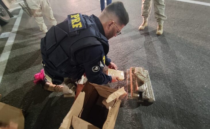 Veículo havia saído de São Paulo em direção a Caruaru Um total de 6 kg de maconha e 1 kg de cocaína foram apreendidos dentro de um ônibus, na madrugada deste domingo (14), na BR 423, em Garanhuns, no Agreste pernambucano. O flagrante foi realizado em uma fiscalização integrada da Polícia Rodoviária Federal (PRF), Agência Nacional de Transportes Terrestres (ANTT) e Secretaria da Fazenda de Pernambuco (Sefaz-PE). Durante a blitz no km 93 da rodovia, LER NOTÍCIA