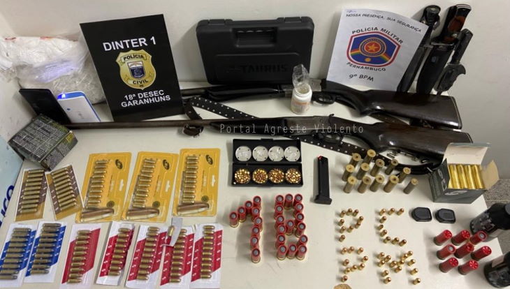 A Polícia Civil de Pernambuco desencadeou na manhã desta quinta-feira (23), a 61ª Operação de Repressão Qualificada do ano, denominada “AZRAEL”, vinculada à Diretoria Integrada do Interior I – DINTER I e à Diretoria Integrada Especializada – DIRESP, sob a presidência dos Delegados Tatiane Rossi, Titular da 22ª Delegacia de Polícia de Homicídios – Garanhuns, unidade integrante da Divisão de Homicídios Agreste – DHA, e Paulo Bicalho, Titular da 8ª Delegacia de Repressão ao Narcotráfico, LER NOTÍCIA
