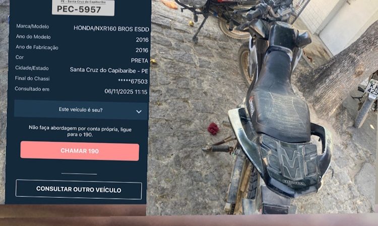 Motocicleta havia sido roubada em 2016, na cidade de Santa Cruz do Capibaribe Uma ação conjunta entre a Guarda Civil Municipal de Iati e a Polícia Militar de Pernambuco, na manhã desta quinta-feira, resultou na recuperação de uma motocicleta Honda Bros com registro de roubo. De acordo com as informações, as equipes foram acionadas após denúncia de um veículo suspeito estacionado em via pública. Durante a verificação, foi constatado que a motocicleta havia sido roubada LER NOTÍCIA