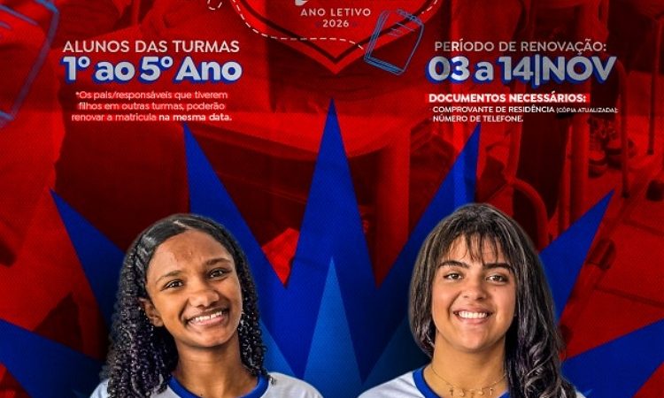 A Prefeitura de Jupi, por meio da Secretaria Municipal de Educação, informa que o período de renovação das matrículas para os estudantes da Escola Municipal Napoleão Teixeira Lima teve início no último dia 3 de novembro e segue até o dia 14 de novembro. A ação tem como objetivo garantir a continuidade dos alunos no ano letivo de 2026, reforçando o compromisso da gestão municipal com uma educação pública organizada, acessível e de qualidade para LER NOTÍCIA