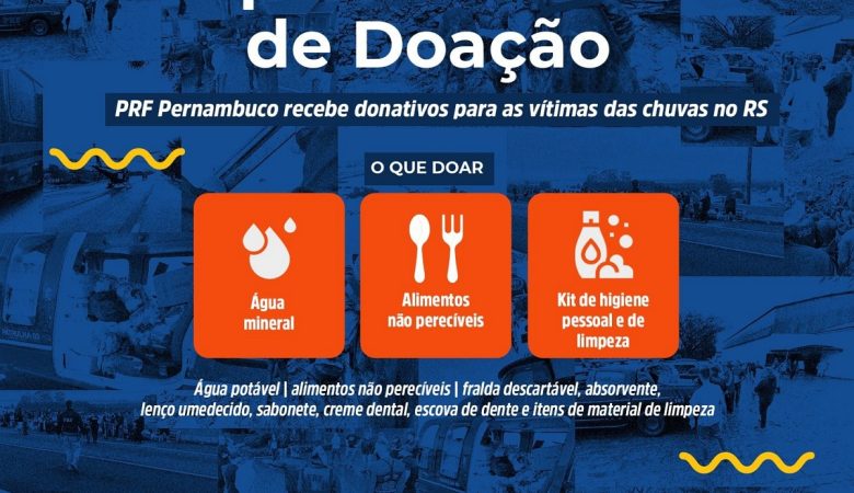Estado vem sofrendo com fortes chuvas nos últimos dias e milhares de pessoas estão desabrigadas A Polícia Rodoviária Federal (PRF) em Pernambuco iniciou, na terça (07), uma campanha de arrecadação de donativos para as vítimas das enchentes no Rio Grande do Sul (RS). Até o próximo dia 21 de maio, todas as unidades da PRF no estado estarão recebendo as doações. O que doar? Os interessados em ajudar as centenas de pessoas desabrigadas e desalojadas LER NOTÍCIA