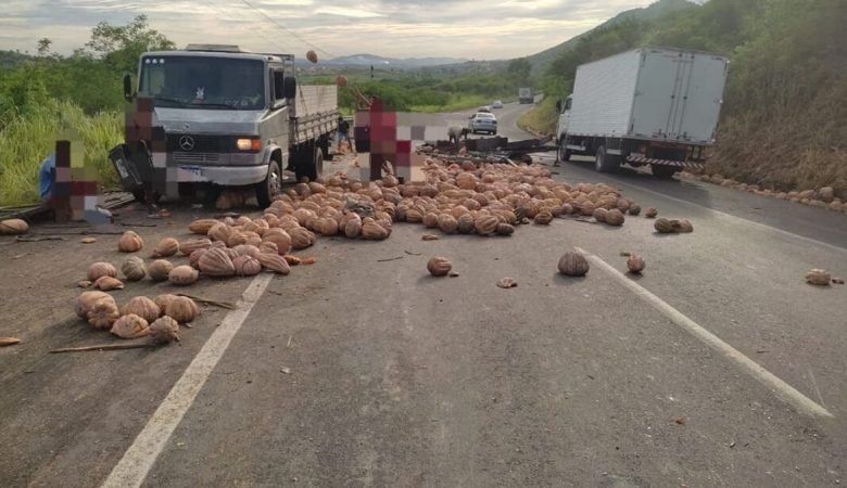 O motorista de um caminhão perdeu o controle do veículo e saiu da pista, na manhã desta quarta-feira (27), em Pombos, no Agreste de Pernambuco. A carga de jerimum que era transportada caiu sobre a pista e ficou espalhada na via, bloqueando as duas faixas e deixando livre apenas o acostamento. O sinistro aconteceu por volta das 5h30, no quilômetro 62,7 da BR-232, no sentido Interior-Recife, na Serra das Russas. A Polícia Rodoviária Federal (PRF) LER NOTÍCIA